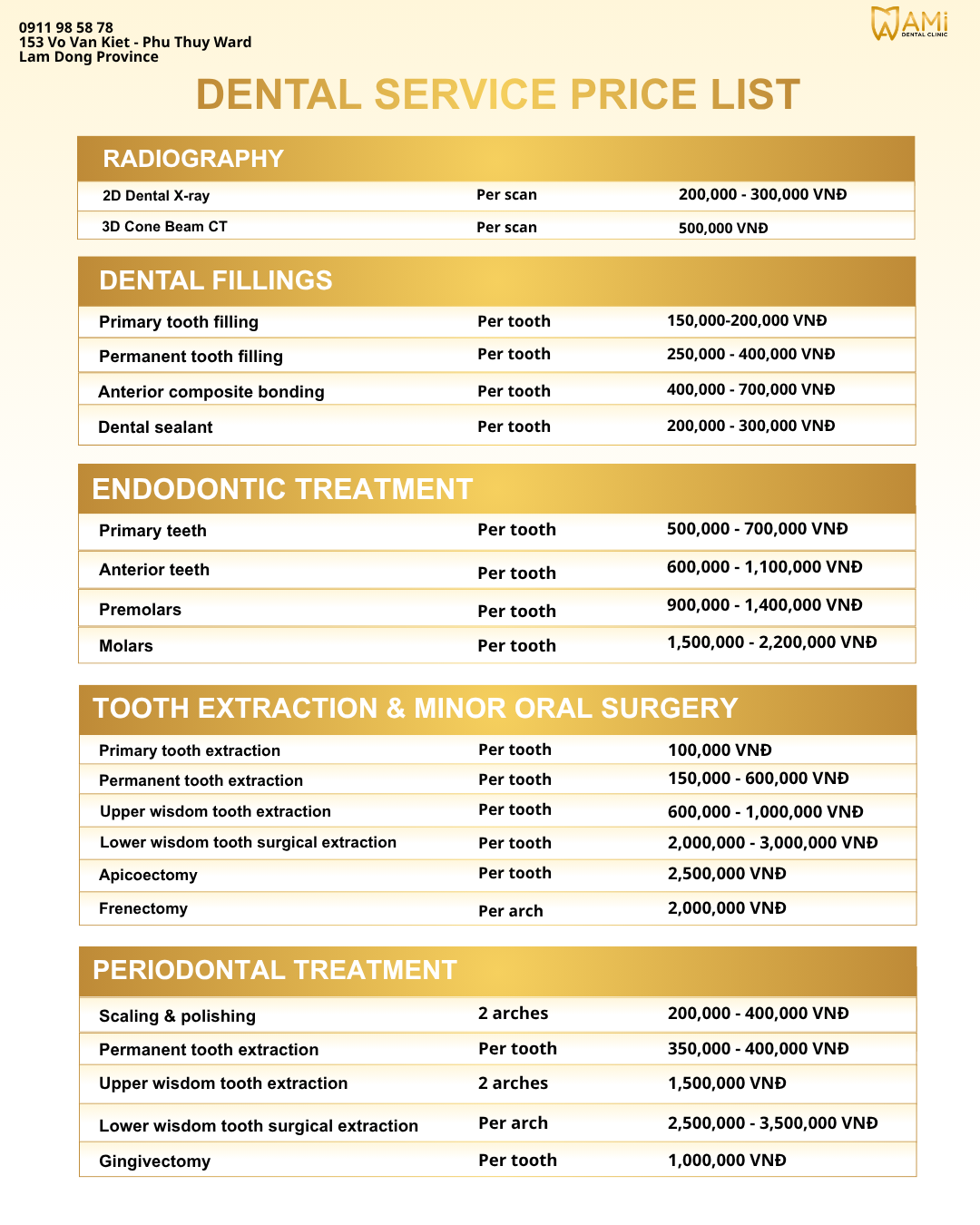 At Ami Dental Clinic, every service is delivered with a clear commitment to quality and transparent pricing, giving you confidence from your very first visit.